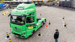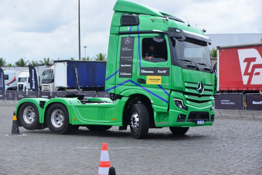 A competição é centrada na prova de slalom — um percurso em zigue-zague entre cones, projetado para testar habilidade, precisão e controle do veículo. Os candidatos, com CNH nas categorias C, D ou E, podem se inscrever gratuitamente no local. O desafio começa com a condução de um caminhão Actros 2653 6×4 pelo trajeto cronometrado. Aqueles que atingirem o tempo mínimo estipulado passam para a fase seguinte: a prova de baliza, que exige ainda mais técnica.