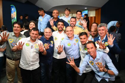 Ao lado do governador do governador Ronaldo Caiado, candidato do União Brasil…